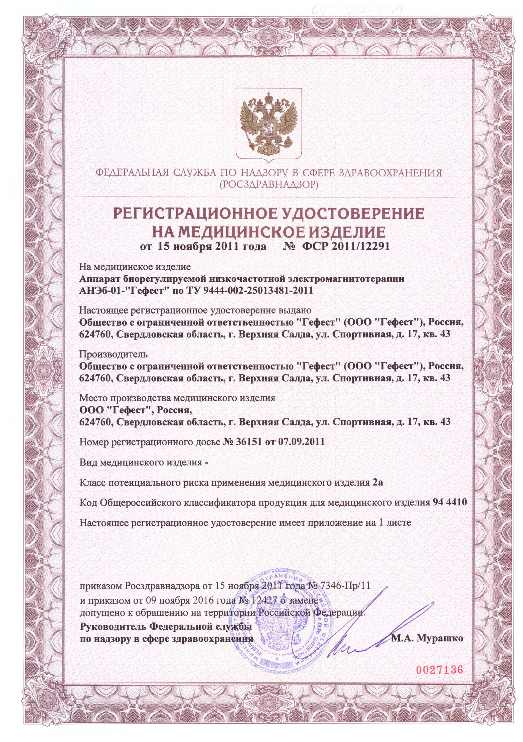 Аппарат биорегулируемой низкочастотной электромагнитотерапии АНЭб-01-Гефест отвечает всем медицинским и техническим требованиям. Он доступен по цене, надёжен и эффективен. Это зафиксировано регистрационным удостоверением и сертификатом.