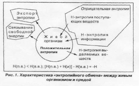 Человек, животные и растительный мир – это открытая термодинамическая системп, в которую поступает поток свободной энергии в виде пищи, солнечной электромагнитной энергии. В то же время, сами живые организмы отдают окружающей среде обесцененную связанную энергию (пот, кал, мочу, температурные излучения и т.д.). Сам процесс обмена энергией между организмом и средой можно описать с помощью энтропии. Энтропия (обращение) – это мера, характеризующая неопределенность (неравновесие), а значит и сам гомеостаз можно рассматривать, как саморегулируемое неравновесие [1, 2].